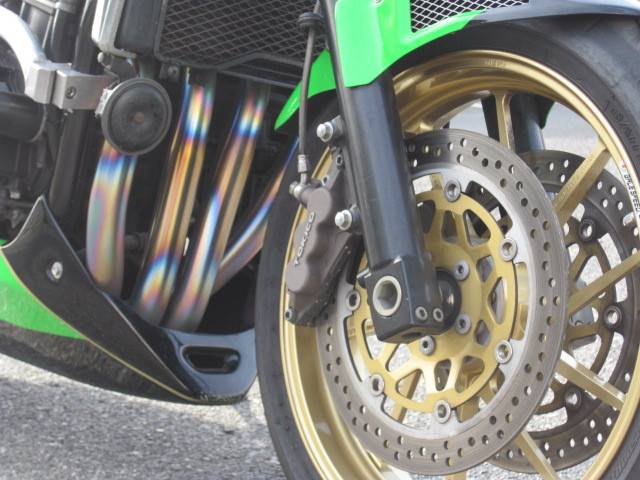 ゲイルスピード17インチアルミホイール、ゲイルスピードスプロケ、ゴールドチェーン、ノジマフルエキマフラー、モリワキバックステップ、モリワキエンジンスライダー、アンダーカウル、オーリンズリヤサス、MRAスクリーン等々。コンディション良好です。 タイヤ前後新品交換渡しです。