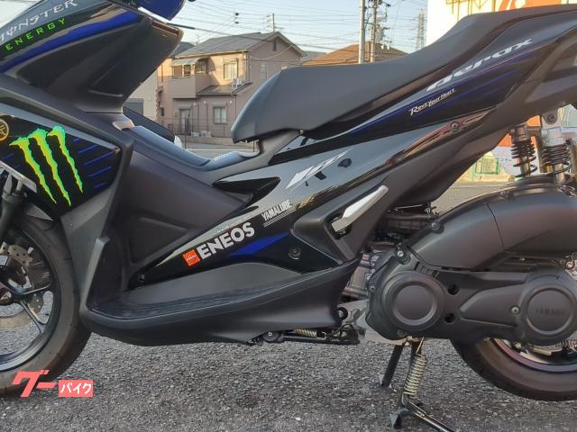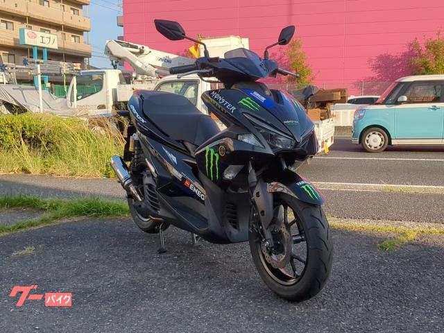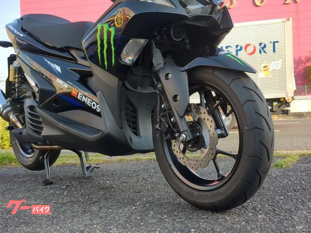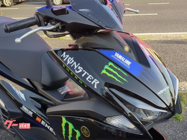 サブタンク付きリヤサスペンション、ウェーブ形状フロントディスクのエアロックス155Rバージョンです。 社外マフラー付きのモンスターエナジーカラー!VAAエンジンが小気味よく回ります。ABS付き。自賠責保険12カ月付きのお支払い総額です。 |